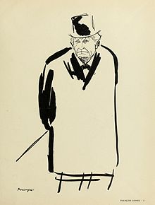 Coppée was famed as le poète des humbles (the poet of the humble). His verse and prose focus on plain expressions of emotion, patriotism, the joy of young love, and the pitifulness of the poor.[2] Coppée continued to write plays, mostly serious dramas in verse, two in collaboration with Armand d'Artois. The performance of a short episode of the Commune, Le Pater, was prohibited by the government in 1889. Coppée published his first prose work in 1875 and went on to publish short stories, an autobiography of his youth, a series of short articles on miscellaneous subjects, and La Bonne Souffrance, a popular account of his reconversion to the Roman Catholic Church. His conversion was due to a severe illness which twice brought him close to death.[2]