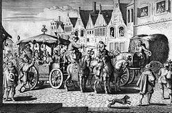 During interrogation, Ravaillac was frequently tortured to make him identify accomplices, but he denied that he had any and insisted that he acted alone. His knowing the king's route and the blockage of traffic that put the king within reach excited speculation. The king was on his way to visit Sully, who lay ill in the Arsenal; his purpose was to make final preparations for imminent military intervention in the disputed succession to Jülich-Cleves-Berg after the death of Duke John William. The intervention on behalf of a Calvinist candidate would have brought him in conflict with the Catholic Habsburg dynasty.[4] Ravaillac seems to have learned of the plans; in his tortured mind, "he had seen that the king wanted to make war on the pope, in order to transfer the Holy See to Paris."[5]