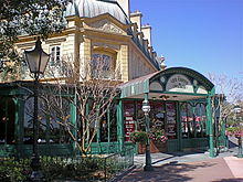 Belle (Paige O'Hara) from the 1991 Disney animated film Beauty and the Beast, which was partly inspired by the version by French filmmaker Jean Cocteau, and Aurora from the 1959 Disney animated film Sleeping Beauty make appearances at the France Pavilion.[4] Here you will also find the comedy chair climbing and balancing show "Serveur Amusant." Also adding to the themed land's atmosphere are advertisements for Disneyland Paris and souvenirs featuring it.