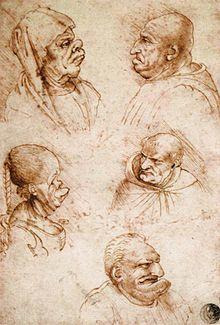 There are several other drawings attributed to him in the Biblioteca Ambrosiana in Milan. This includes Head of an Old Man which he signed himself saying "1510 a dí 14 Augusto p.a caveat de relic Franchesco de Melzo de anti 17" which means "on the day 14 August taken from a relief by Francesco Melzi 17 years of age."[21] There is a note on the back sheet that identifies the man in this drawing as Artus Boysi.[22] This drawing is red chalk on paper, and although it highlights the artist's keen ability to render from observation, Francesco's note at the bottom leads us to believe that it was based on a relief, most likely by Leonardo.[21] It is also conjectured that he uses this same head in his Vertumnus and Pomona. He also created the chalk drawing Five Grotesque Heads, in addition to Seven Caricatures and Two Grotesque Heads, all in similar style. There are many drawings attributed to Francesco, however it is often difficult to know definitively if they are his because his style is so influenced by, and therefore similar to, Leonardo's.[32]