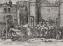 In religion, the Guises increased the repression of Protestantism started by King Henry II. The autumn of 1559 saw a wave of house searches, arrests, and asset forfeitures.[12] On 23 December 1559, the counsellor-clerk Anne du Bourg, magistrate at the Parlement of Paris, which had contested the repression, was publicly executed in Paris at the Place de Grève.