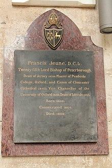 Francis Jeune (22 May 1806 – 21 August 1868), also known as François Jeune, was a Jersey-born academic and churchman who served as Dean of Jersey (1838–1844) Master of Pembroke College, Oxford (1844–1864) and Bishop of Peterborough (1864–1868).[1]