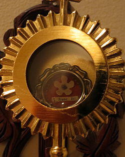 Saint Francis' feast day is observed on October 4. A secondary feast in honor of the stigmata received by Saint Francis, celebrated on September 17, was inserted in the General Roman Calendar in 1585 (later than the Tridentine Calendar) and suppressed in 1604, but was restored in 1615. In the New Roman Missal of 1969, it was removed again from the General Calendar, as something of a duplication of the main feast on October 4, and left to the calendars of certain localities and of the Franciscan Order.[42] Wherever the traditional Roman Missal is used, however, the feast of the Stigmata remains in the General Calendar.