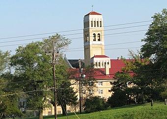 In 1947, the order built its motherhouse, with its landmark yellow steeple, on a bluff overlooking the One Hundred and Two River. In 1963 they opened the Mount Alverno Academy for high school girls on land next to the motherhouse. The high school closed in 1971.