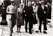 In November 1927 Ascaso and Durruti arrived in Lyon, France. In January 1928 Ascaso and Durruti traveled to Paris for the purpose of meeting with Joaquín Cortés as well as anarchist groups of the time. They were soon arrested upon arrival "infractions of the law on foreginers".[4] They were sentenced to six months and were released in early October 1928 and arrived in Berlin by Late October.[4] The two men lived with Augustin Souchy. Soon Paul Kampfmeyer, a former anarchist and member of the Berlin Social Democratic party who had previously aided anarchists Nestor Makhno[a] and Emma Goldman escape Russia, came in contact with the two men aiming to provide them with residency permits. During their time in Berlin fear of arrest was omnipresent so the men began to plot leaving.[4] Soon they were able to gather enough funds and left Berlin, arriving in Belgium by early 1929. They were later implicated in a conspiracy to attack Princess María José and Italian Prince Umberto of Piedmont. By 1931 Ascaso had returned to Spain although he was soon deported to Africa in 1932 where he became the editor of Solidaridad Obrera (Workers' Solidarity) and as secretary of the Catalan CNT frequently criticising the policies of the Asturian CNT.[5]