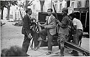During the Spanish Civil War, while living in Barcelona, Ascaso would form the Antifascist Militias Committee.[2] Ascaso alongside Durruti and the CNT would attack army depots and the prison ship Uruguay with home-made grenades and improvised armoured cars.[7] Ascaso was one of the 500 to die in the assault of Atarazanas barracks.[2][8] Ascaso was buried in Montjuïc Cemetery alongside Durruti.[9]