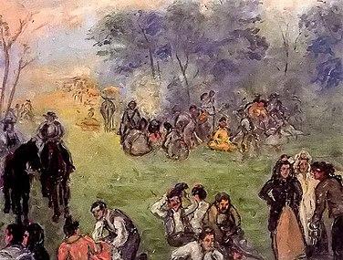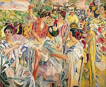 He continued to travel throughout the Basque Country, France and Andalusia, which was his favorite place because of the landscapes, although he also painted bullfights, festivals and portraits of women. During this time his palette brightened and he made more use of contrasting colors. From 1911 to 1912, he spent some time in Morocco with Henri Matisse, a close friend he had met in the workshops of Gustave Moreau, and who he often stayed with when visiting Paris. He had a major showing in 1919, hosted by the Círculo de Bellas Artes.[1]