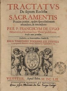 Francisco de Lugo (1580–1652) was a Spanish Jesuit theologian. He briefly taught theology at the Universidad Javeriana in Santa Fe de Bogota, New Kingdom of Granada before moving to Mexico. During his time in America, he wrote several works which were published upon his return to Spain.[1]