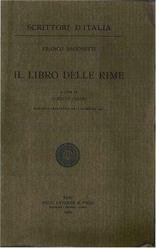 Franco Sacchetti (Italian pronunciation: [ˈfraŋko sakˈketti]; c. 1335 – c. 1400), was an Italian poet and novelist.
