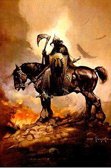 Frank Frazetta (born Frank Frazzetta /frəˈzɛtə/; February 9, 1928 – May 10, 2010)[1][2] was an American fantasy and science fiction artist, noted for comic books, paperback book covers, paintings, posters, LP record album covers and other media. He is often referred to as the "Godfather" of fantasy art, and one of the most renowned illustrators of the 20th century. He was also the subject of a 2003 documentary Painting with Fire.