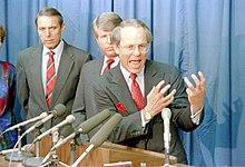 Frank J. Fahrenkopf Jr. (born August 28, 1939) is an American attorney, political executive, and lobbyist who was chairman of the Republican National Committee from 1983 to 1989. Fahrenkopf is co-founder, and currently co-chairman, of the Commission on Presidential Debates, which conducts the United States general election presidential and vice presidential debates. In the private sector, Fahrenkopf most recently served as the American Gaming Association's first president, and retired from the position in 2013.