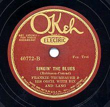 "Singin' the Blues", released by Frankie Trumbauer and His Orchestra featuring Bix Beiderbecke on cornet and Eddie Lang on guitar in 1927 as Okeh 40772-B, was inducted into the Grammy Hall of Fame in 1977. Frankie Trumbauer played the C-melody saxophone solos on the landmark jazz recording.