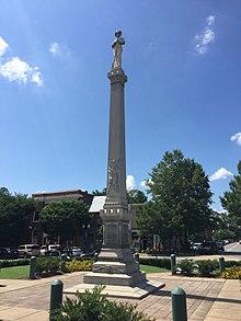 A memorial to Confederate soldiers was erected in 1899 by fourteen women of the United Daughters of the Confederacy to honor Confederate soldiers, including the 6,125 casualties of the Battle of Franklin.[20] A news report described how as the last piece of the statue was being raised, a buggy ran into a rope, causing the statue to swing into the shaft, breaking out a piece from the hat of the figure. This event has given rise to the monument's nickname by many of "Chip."[21]
