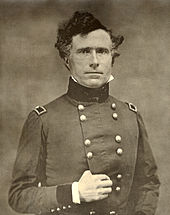As the Battle of Churubusco approached, Pierce was ordered by Scott to the rear. He responded, "For God's sake, General, this is the last great battle, and I must lead my brigade." Scott yielded, and Pierce entered the fight tied to his saddle, but the pain in his leg became so great that he passed out on the field. The Americans won the battle and Pierce helped negotiate an armistice. He then returned to command and led his brigade throughout the rest of the campaign, eventually taking part in the capture of Mexico City in mid-September, although his brigade was held in reserve for much of the battle.[62] He spent much of that battle in the sick tent, plagued with acute diarrhea.[61] Pierce remained in command of his brigade during the three-month occupation of the city, while frustrated with the stalling of peace negotiations, and tried to distance himself from the constant conflict between Scott and the other generals.[62]