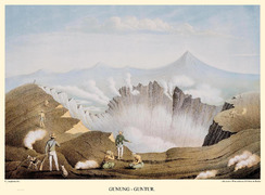 Junghuhn settled on Java, where he made an extensive study of the land and its people. He discovered the Kawah Putih crater lake south of Bandung in 1837. He published extensively on his many often highly adventurous expeditions and his scientific analyses. Among his works is an important description and natural history in many volumes of the volcanoes of Java, Bijdragen tot de geschiedenis der vulkanen in den Indischen Archipel (1843). He completed Die Topographischen und Naturwissenschaftlichen Reisen durch Java (Topographic and Scientific Journeys in Java) in 1845 and a first anthropological and topographical study of Sumatra, Die Bättalander auf Sumatra (Batak lands of Sumatra). in 1847. In 1849, ill health forced his return to the Netherlands, where he married Johanna Louisa Frederika Koch on January 23, 1850, and had a son. While in the Netherlands, Junghuhn began work on a four volume treatise published in Dutch and translated into German between 1850 and 1854: Java, deszelfs gedaante, bekleeding en inwendige struktuur (in German: Java, seine Gestalt, Pflanzendecke, und sein innerer Bau). Junghuhn was an avid humanist and socialist. In the Netherlands he published anonymously his free-thinking manifesto Licht- en Schaduwbeelden uit de Binnenlanden van Java (Images of Light and Shadow from Java's interior) between 1853 and 1855. The work was controversial, advocating socialism in the colonies and fiercely criticizing Christian and Islamic proselytization of the Javanese people. Junghuhn instead wrote of his preference for a form of Pandeism (pantheistic deism), contending that God was in everything, but could only be determined through reason. The work was banned in Austria and parts of Germany for its "denigrations and vilifications of Christianity", but was a strong seller in the Netherlands where it was first published pseudonymously. It was also popular in colonial Indonesia, despite opposition from the Dutch Christian Church there. The publisher of the first volume, Jacobus Hazenberg, refused to continue his association with the work; the remaining four were published by the outspoken liberal, Frans Günst, from volume three as installments (from October 1, 1855) of the newly founded journal for freethinkers, De Dageraad (Dawn). In 1855 Junghuhn became a corresponding member of the Royal Netherlands Academy of Arts and Sciences.[2]