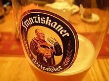 "Spaten" means spade in German, and the symbol of the brand is a malt shovel. "Franziskaner" means Franciscan in German, and the picture on the label is of a Franciscan friar.