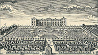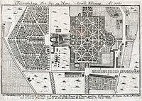 The plan involved a parterre with a complex system of cascades on the sloping terrain in front of the new palace. It was fed by a complicated but inefficient system of pumps which never came to work properly.[2]