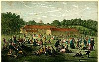 Though a palace park, the general public had access to the grounds but sailors, dogs and people in poor clothing or carrying large bundles were turned away by the guard at the park's sole entrance. Not until 1865 did access to the park become unrestricted,[3] in line with what was the case elsewhere in the city, such as at Langelinie. Smørrebrødsplænen (Smørrebrød Lawn), on the corner of Roskildevej and Pile Allé, where K. B.'s tennis halls are today, became a popular picnic destination for families.