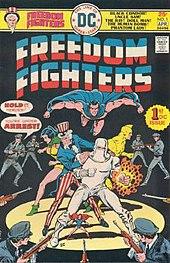Freedom Fighters is a fictional superhero team appearing in American comic books published by DC Comics. The original six characters were the Black Condor, Doll Man, the Human Bomb, the Ray, the Phantom Lady, and Uncle Sam.[1] Although the characters were created by Quality Comics, they never were gathered in a group before being acquired by DC. The team first appeared in a Justice League of America/Justice Society of America team-up, which ran in Justice League of America #107–108 (October–December 1973), written by Len Wein and drawn by Dick Dillin.[2][3] Their own ongoing series premiered with Freedom Fighters #1 (April 1976), written by Gerry Conway and Martin Pasko, and drawn by Ric Estrada.