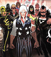 - ^ According to Justin Gray's July 2006 interview with The Kingdom, his team's members will ultimately include: Uncle Sam, Doll Man, the Phantom Lady, the Ray, Firebrand, the Human Bomb, the Black Condor, and Miss America.