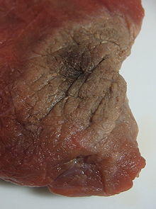Freezer burn is a condition that occurs when frozen food has been damaged by dehydration and oxidation, due to air reaching the food.[1] It is generally caused by food not being securely wrapped in air-tight packaging.