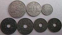 The events of the Second World War also affected the coinage substantially. In 1941, aluminium replaced aluminium-bronze in the 50 centimes, and 1, 2, and 5 francs as copper and nickel were diverted into the War Effort. In 1942, following German occupation and the installation of the French Vichy State, a new, short lived series of coins was released which included holed 10 and 20 centimes in zinc. 50 centimes, and 1 and 2 francs were aluminium. In 1944 this series was discontinued and withdrawn and the previous issue was resumed.
