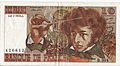 The first issue of the new franc consisted of 500, 1000, 5000 and 10,000-franc notes overprinted with their new denominations of 5, 10, 50 and 100 new francs. This issue was followed by notes of the same design but with only the new denomination shown. A 500-new franc note was also introduced in 1960 representing Molière, replaced in 1969 by the yellow Pascal type (colloquially called a pascal). A 5-franc note was issued until 1970 and a 10-franc note (showing Hector Berlioz) was issued until 1979.
