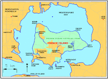 The French Island National Park is a national park located in the Greater Melbourne region of Victoria, Australia. The 11,100-hectare (27,000-acre)[1] national park is 61 kilometres (38 mi) southeast of Melbourne on French Island within Western Port and accessible only via water.