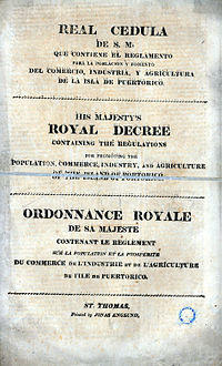 The Spanish Crown decided that one of the ways to discourage pro-independence movements in Puerto Rico (and Cuba) was to allow Europeans who were not of Spanish origin and who swore loyalty to the Spanish Crown to settle in the island. Therefore, the decree was printed in three languages: the Spanish language, the English language, and the French language and circulated widely through ports and coastal cities throughout Europe.