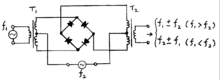 Suppose that two input sinusoids of different frequencies are fed into the diode, such that and . The signal becomes:
