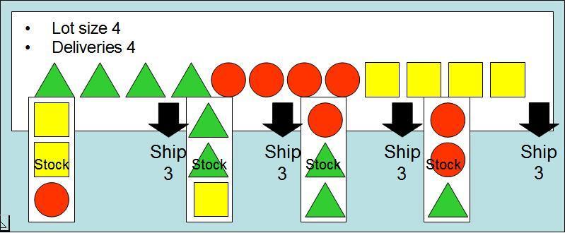If we{who?|date=January 2019]} model this idea using a factory that produces three products (Triangles, Circles and Squares) and is making a regular daily delivery to its customer at the end of each day then we can represent this as below.