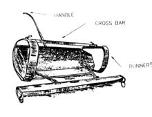 The Fresno Scraper is a machine pulled by horses used for constructing canals and ditches in sandy soil. The design of the Fresno Scraper forms the basis of most modern earthmoving scrapers, having the ability to scrape and move a quantity of soil, and also to discharge it at a controlled depth, thus quadrupling the volume which could be handled manually.