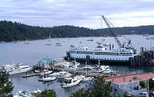 Friday Harbor's primary connection to the mainland is via Washington State Ferries, which sail between the town and Anacortes, Washington several times per day. Friday Harbor can also be reached via ferry from Sidney, British Columbia, on Washington State Ferries' only international route. This service is available seasonally, only (i.e., May to October). The Friday Harbor Airport features limited airline service.