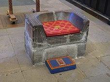 Also, frith-stool or frithstool, OE frithstól, frythstól, freedstool, fridstool, meaning (a). Old English only, A place of safety; a refuge; (b). A seat, usually of stone, formerly placed near the altar in some churches, which afforded inviolable protection to those who sought privilege of sanctuary.[1]