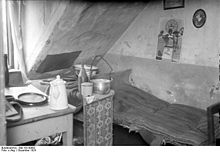 Following Haarmann's arrest, rumors circulated that Haarmann ate the flesh of his victims, or sold it on the black market as pork or horse meat.[35] Although no evidence was ever produced to confirm these theories, Haarmann was known to be an active trader in contraband meat,[36] which was invariably boneless, diced and often sold as ground meat.[37] When asked where he obtained the meat, Haarmann sometimes said he had gotten it from a butcher named "Karl".[38] Haarmann initially resided in a hotel, before he and Grans lodged with a middle-class family.[39]
