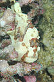 Many frogfishes can change their colour.[2] The light colours are generally yellows or yellow-browns, while the darker are green, black, or dark red. They usually appear with the lighter color, but the change can last from a few days to several weeks. What triggers the change is unknown.[2]