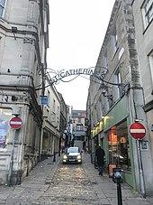 The manufacture of woollen cloth was established as the town's principal industry in the 15th century.[48] In 1542 during one of his itineraries to observe historic English and Welsh landscapes, Leland described Frome as a town that "hathe a metley good market" and "dyvers fayre stone howsys in the towne that stand y the moste by clothinge". He went on to mention what seems to be Spring Gardens where the Mells River meets the River Frome: clothiers' buildings and fulling mills: "I cam to a botome, where an other broke ran in to Frome. And in this botome dwell certayne good clothiuars havynge fayre howsys and tukkynge myles."[49] Frome remained the only Somerset town in which this staple industry flourished.[27]