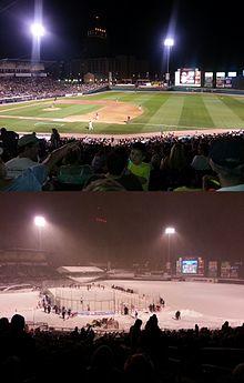In December 2013, the stadium was the host of Frozen Frontier, an outdoor hockey event. A sheet of ice was set up on the field and the Rochester Americans played the Lake Erie Monsters in an American Hockey League game. There were also collegiate and high school games.[17]