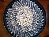 - Sashimi — The most popular dish is fugu sashimi, also called Fugu sashi or tessa. Knives with exceptionally thin blades are used for cutting fugu into translucent slices, a technique known as Usuzukuri (薄造, うすづくり).[37]