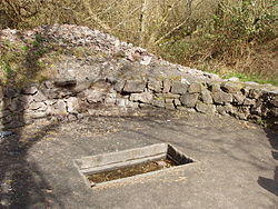 Fulacht fiadh (Irish pronunciation: [ˈfˠʊl̪ˠəxt̪ˠ ˈfʲiːə]; Irish: fulacht fiadh or fulacht fian; plural: fulachtaí fia or, in older texts, fulachta fiadh) is the name given to one of many burned mounds, dating from the Bronze Age, found in Ireland. Most surviving examples consist of a low horseshoe-shaped mound[1] of charcoal-enriched soil, and heat shattered stone, with a cooking pit located in a slight depression at its centre. In ploughed fields, they are apparent as black spreads of earth interspersed with small sharp stones.[2]