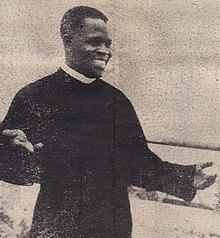 During his time at Saint-François, Youlou made an impression as a Lari orator.[19] Many Lari were followers of Matswanisme, a messianic movement challenging colonialism which was founded by a Téké [André Matswa or Mutswé], who died in prison in 1942.[19] The young Abbé managed to position himself as an interlocutor for the Matswa, taking control of Amicale, the Lari self-help organization Matswa had founded,[10] allowing him to exercise influence on his disciples.[20] In addition, his focus on the association enabled him to attach himself to the Lari youth.[20] Finally, his punishment by the church confirmed him in his role as their leader because it made him appear the victim of the European-dominated Congoloese church.[18][21]