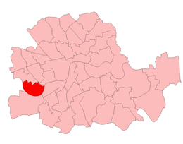 1983–1997: The London Borough of Hammersmith and Fulham wards of Avonmore, Colehill, Crabtree, Eel Brook, Gibbs Green, Margravine, Normand, Palace, Sands End, Sherbrooke, Sulivan, Town, and Walham.