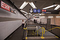 An intricate system of ramps was replaced by two new mezzanines.[50]:11 Work on the IND mezzanine commenced in January 2010; the reconstruction of the transfer mezzanine over the Fulton Street IND platform resulted in traffic flow changes.[51] The Eighth Avenue Line station adopted the "Fulton Street" name in December 2010 to become unified with the other platforms in the station complex.[52] The eastern mezzanine and parts of the western mezzanine had opened by 2011,[53]:44 and the western mezzanine was completed by 2012.[54]:2 Additionally, new entrances were opened as part of the project.[47] In October 2012, a new entrance on Dey Street opened for the Dey Street underpass to Cortlandt Street, and an ADA-accessible elevator was installed for the southbound Lexington Avenue Line platform.[55] In November 2014, the Fulton Center project was completed, and the entire complex was made ADA-accessible.[47]