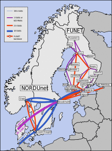 FUNET is the Finnish University and Research Network, a backbone network providing Internet connections for Finnish universities and polytechnics as well as other research facilities. It is governed by the state-owned CSC – IT Center for Science Ltd. The FUNET project started in December 1983 and soon gained international connectivity via EARN with DECnet as the dominant protocol. FUNET was connected to the greater Internet through NORDUnet in 1988. The FUNET FTP service went online in 1990, hosting the first versions of Linux in 1991.[1]