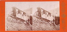 Until the end of the 1870s, the four-rail parallel-track funicular was the normal configuration. Carl Roman Abt developed the Abt Switch allowing the two-rail layout, which was used for the first time in 1879 when the Giessbachbahn funicular opened in Switzerland.[2] In the United States, the first funicular to use a two-rail layout was the Telegraph Hill Railroad in San Francisco, which was in operation from 1884 until 1886.[3] The Mount Lowe Railway in Altadena, California, was the first mountain railway in the United States to use the three-rail layout. Three- and two-rail layouts considerably reduced the space required for building a funicular, reducing grading costs on mountain slopes and property costs for urban funiculars. These layouts enabled a funicular boom in the latter half of the 19th century.