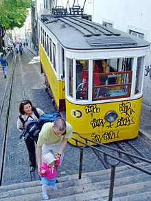 Private funiculars on steep sections provide easier access from the street to a house than steep paths or steps. They are common in hilly cities, such as Wellington, New Zealand, which has about 300.[23] These have a small car for two to four people permanently attached to a cable from a winch, which runs on an inclined pair of rails (beams) or a single rail at a low speed (0.3 to 1.0 metres/second). They are often called "cable cars" or "lifts" (elevators), e.g., in the New Zealand standard for private cable cars.[24] Larger and faster models can improve access to commercial buildings.[25]