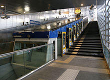 The Carmelit is an underground funicular railway in Haifa, Israel. It is one of the smallest metro systems in the world, having only four cars, six stations and a single tunnel 1.8 km (1.1 mi) long. It operated from its construction in 1959 until 1986 after showing signs of aging. It subsequently reopened in September 1992 after extensive renovations.