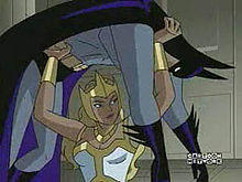 A character with elements of both versions of Fury appears as a villainess named Aresia (voiced by Julie Bowen) in the Justice League animated series,[17] in an episode titled "Fury", though Aresia herself is never named as such. Aresia is a rogue Amazon bent on exterminating men from the planet. She was born in "Man's world". When she was just a girl, she and her mother were forced to flee their homeland from war. On a refugee ship, she was attacked by pirates, who also sank the ship. After drifting aimlessly for days, she washed ashore on Themyscira, where she was taken in by Queen Hippolyta who found her while riding her horse along the shores. Aresia was raised as an Amazon. During the last stage of her Amazon rebirth (solitary meditation), she secretly left the island to exact her revenge on the men of the world. With the help of Lex Luthor's Injustice Gang, she makes a special magic-based virus that will only affect men. She tests it on Gotham City and watches as the city goes into chaos. The other male members of the League are quickly taken out, although J'onn J'onzz holds out the longest, leaving only Wonder Woman and Hawkgirl. With her sidekicks, Star Sapphire and Tsukuri, Aresia plots to send her virus around the world. She believes this will make her a hero among the Amazons. When Queen Hippolyta arrives, Aresia explains her plan and expects the queen to approve and give her blessing (she believes she is, after all, acting on everything Hippolyta has taught her), but Hippolyta states that she has violated Amazonian Law by lying, stealing, and committing mass destruction. Disappointed by her disapproval, Aresia knocks out Hippolyta and takes her as a hostage. She then sends Star Sapphire to find Wonder Woman and Hawkgirl, and when they are led to her, she offers them both a chance to join their cause. She angrily sees Wonder Woman's polite rejection as "standing against [them, her] sisters". She, Star Sapphire, and Tsukuri then battle and subdue the female Justice Leaguers, after which Aresia hijacks a stealth bomber and attempts to release her poison into the atmosphere. After another brief battle against Wonder Woman and Hawkgirl, this time on the jet, Star Sapphire is knocked into the sea, and Tsukuri abandons Aresia. It is then that she learns from Hippolyta that she did not survive the shipwreck on her own. She was rescued by the ship's captain (a man), who brought her to Themyscira before dying of heart failure. Both of them were found by Hippolyta, who buried the captain in an unmarked grave near the beach (making him the only man buried on Themyscira). At first, Aresia is angry and asks why Hippolyta never told her this, to which Hippolyta answers that she thought it was not important (that "he wasn't important"), which Hippolyta makes clear she regrets. However, this story does not change Aresia's mind: "The acts of one man cannot redeem the sins of his kind. They must all pay", she states. She tries to launch the poison missiles, but Hawkgirl smashes in the missile bay doors with her mace, jamming them and making it impossible to launch the missiles. Wonder Woman, Hawkgirl, and Hippolyta escape, leaving Aresia alone to die as the plane crashes down and the missiles explode. Later, Wonder Woman and Hawkgirl discover Aresia's hideout and find her notes, which they use to make an antidote for Aresia's poison.