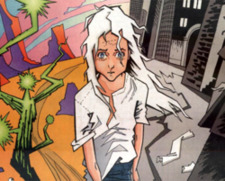 For a while, Lyta served with Infinity, Inc., but eventually left the team to bear a child.[1] At home, Lyta was visited by a resurrected Hector Hall. After his death, Hall mistakenly believed he had been chosen as the Guardian of Dreams, the Sandman, and joined the real Sandman in the Dream Dimension, where they had adventures masterminded by the two schemers Brute and Glob.[4]