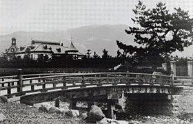One of his residences, which was in Sumiyoshi village in Kobe〈now, near Sumiyoshi Station (JR West), to which it is said that he crossed his private bridge shown above on his private carriage with chauffeur from the main gate of his residence also shown above to go, and Nada High School〉had a hospital, electric power plant and the custom-made air-conditioning tunnel from Mount Rokkō for itself in the era without air conditioning. He was also running true locomotives in the garden for his children.[5][6]